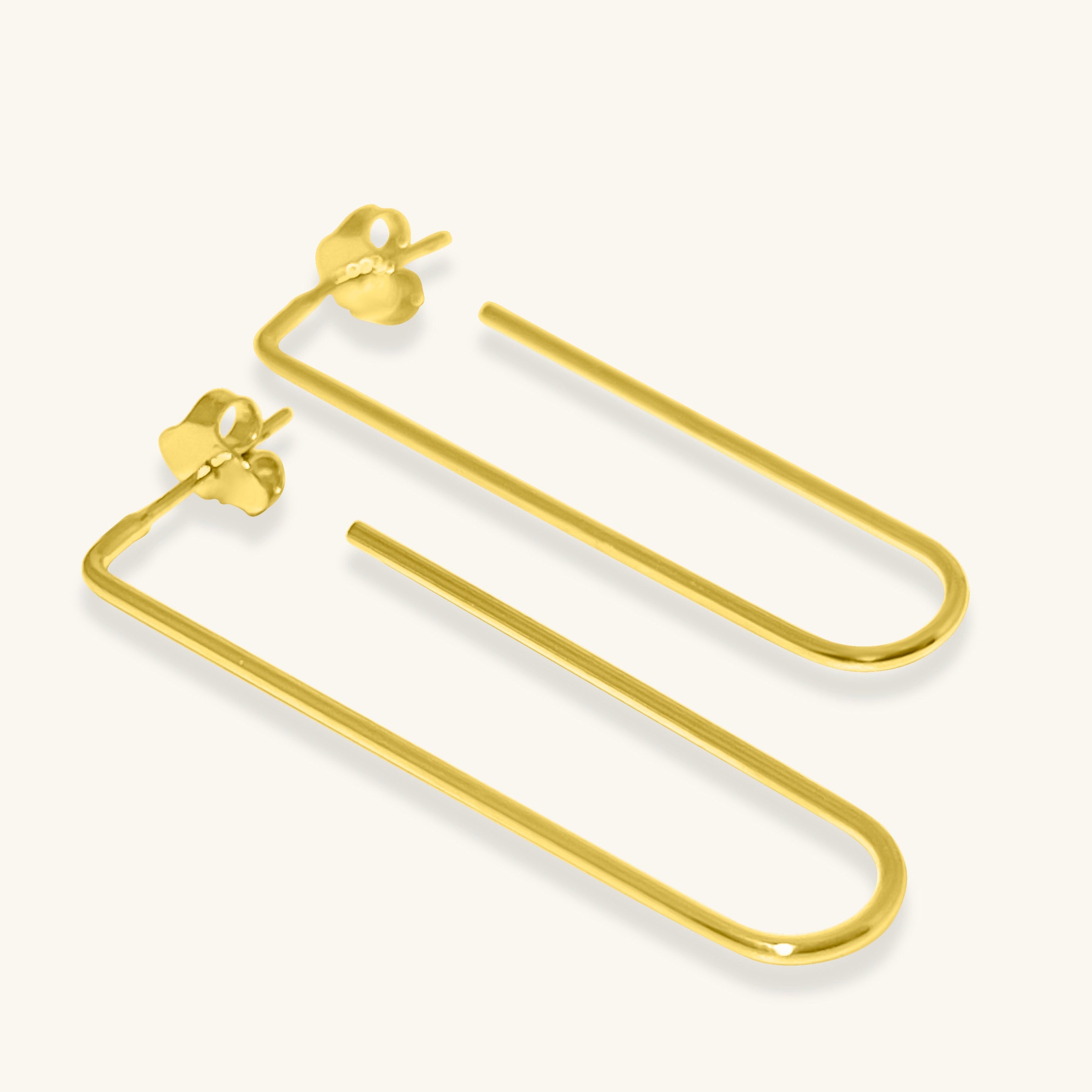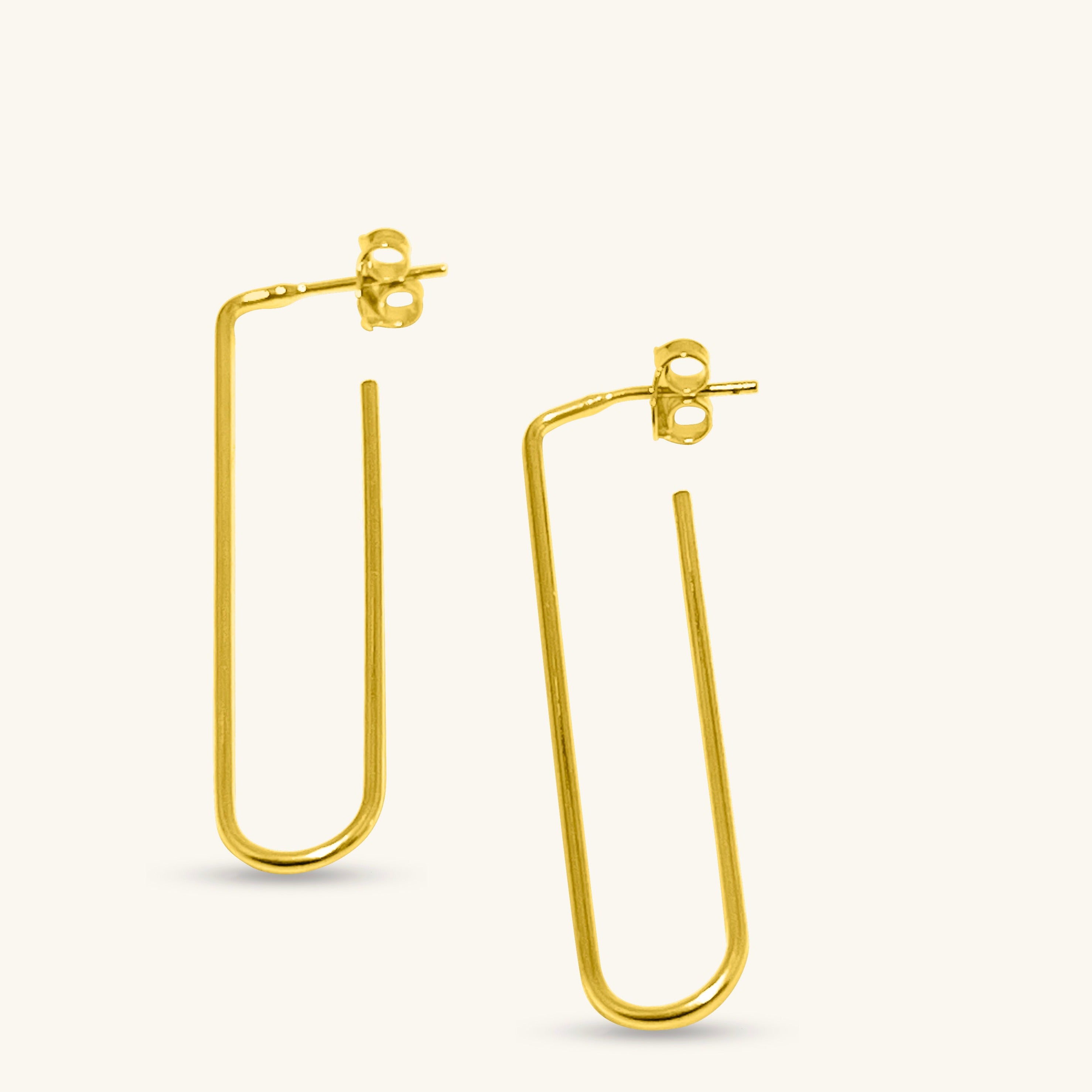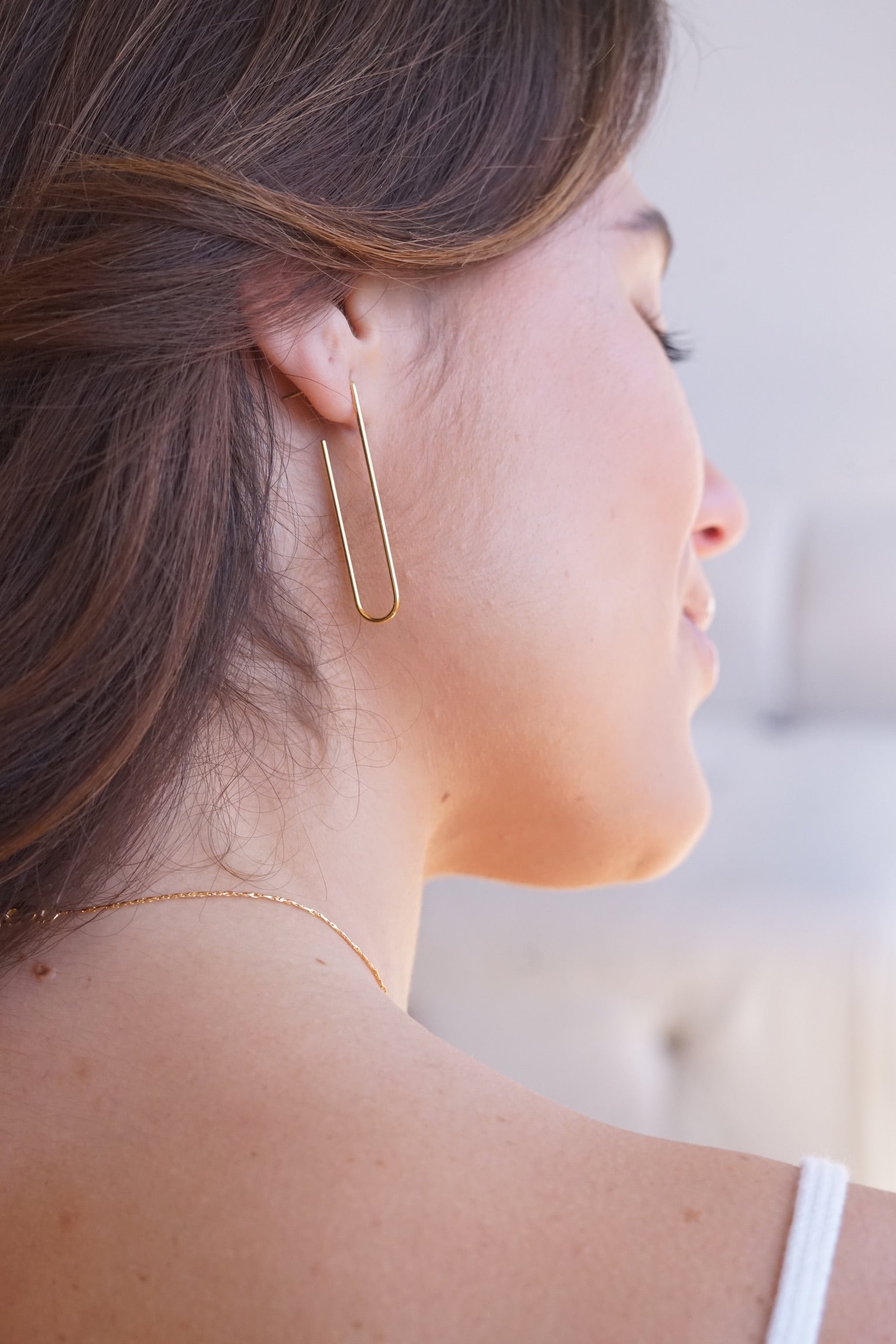 Add an elegant touch to your wardrobe with our Antonia Thin Paperclip Hoop Earrings. These 18k gold filled stud earrings feature a unique thin paperclip design that is both stylish and versatile. Elevate any outfit with the effortlessly chic hoops!